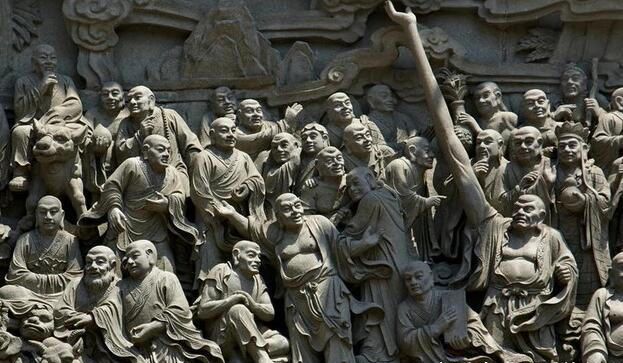 传说,在这幅罗汉堂里因为济公姗姗来迟,所以并没有安排它的座位,它只能在一边呆着。比如,北京香山碧云寺也有罗汉堂,上面也有济公,但是济公位置在房梁上。