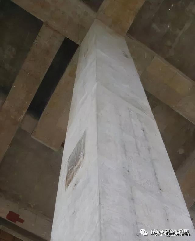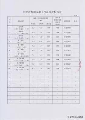 主体实体检测用回弹仪进行回弹检测,从回弹检测数据显示:梁板柱节点处,从柱边四周一米范围内,混凝土强度等级从柱高强度等级逐渐降低致梁板低强度等级,而不是高低强度等级的骤变,这是钢丝网分隔、当混凝土浇捣時高低强度等级混凝土的浆液互有渗透形成高低强度等级逐步过度。