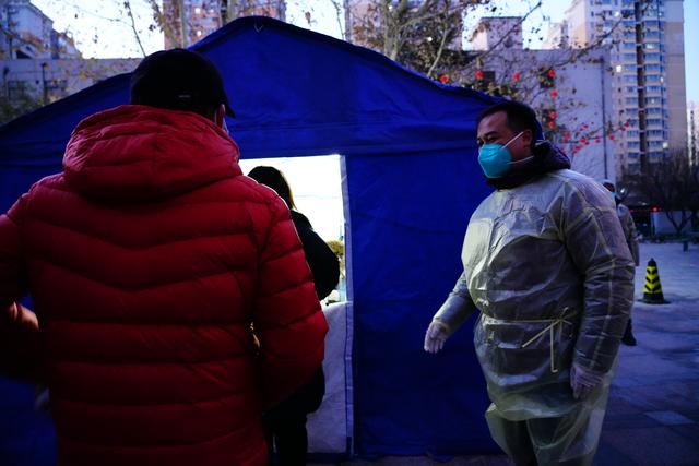 1月29日,丰台区启动第四轮区域核酸检测,来自规划自然资源委丰台分局、区档案馆、区房管局、区政务服务管理局、丰开集团的下沉支援力量第一时间抵达青塔街道设置的各核酸检测点位,迅速投入现场工作。