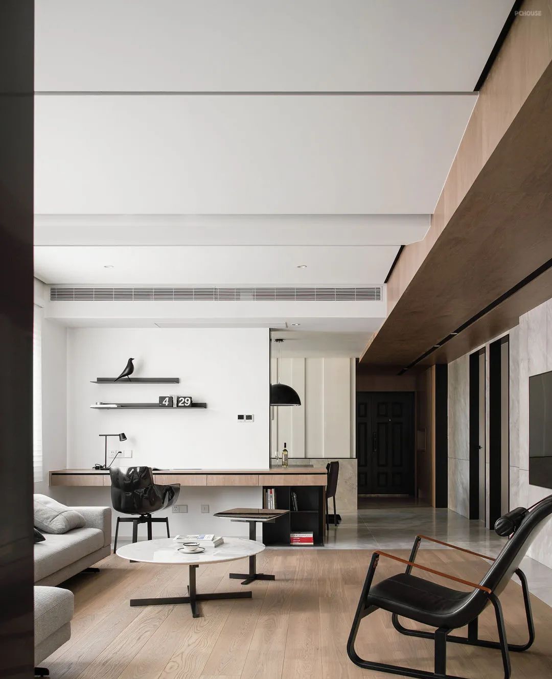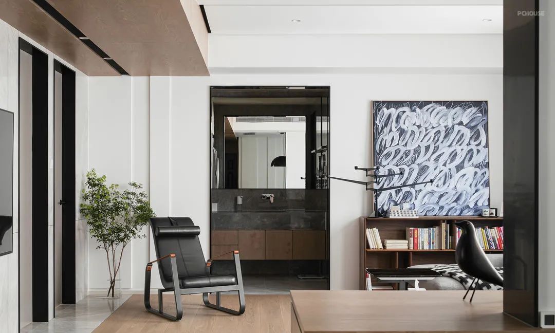 材质丰富的对立面,与之相反,是大面积的留白,为视线停留做缓和,也增强了空间对比度突出主次分明。