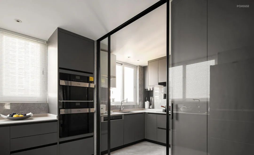 原北面阳台被改造成西厨空间,承接了餐厅和厨房之间空间过渡,原本较小的厨房空间也得到极大的扩展。