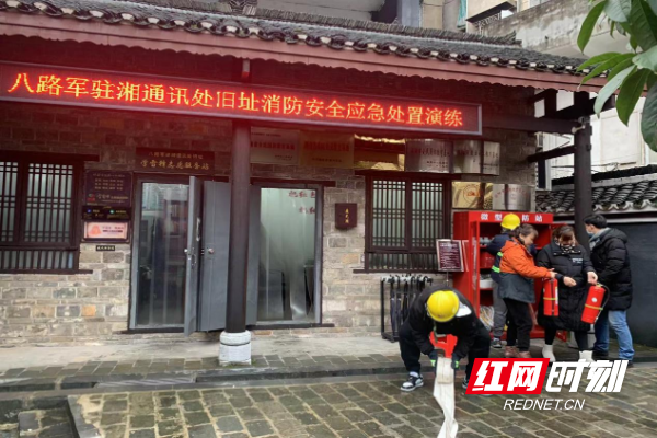 红网时刻1月28日讯(通讯员 姚秋实 苏渊 )1月27日,双清区文旅广体局在省级文物保护单位八路军驻湘通讯处旧址开展2022年春节前革命文物消防安全应急演练。