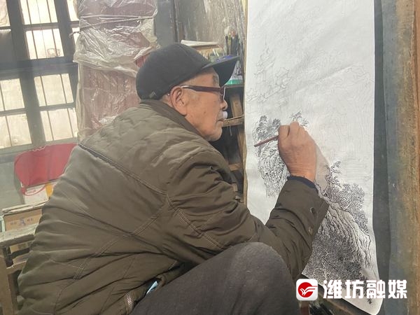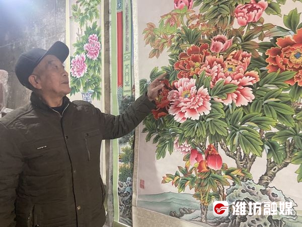 1月25日,走进昌邑市奎聚街道邰辛村年画艺人王世忠家里,满目皆是各类年画作品。作为昌邑市非物质文化遗产项目家堂画技艺传承人,今年75岁的王世忠在继承传统的基础上不断创新,对流派纷呈的多样形式兼收并蓄,保留浓郁地方特色的同时,给人以盛世的美感。