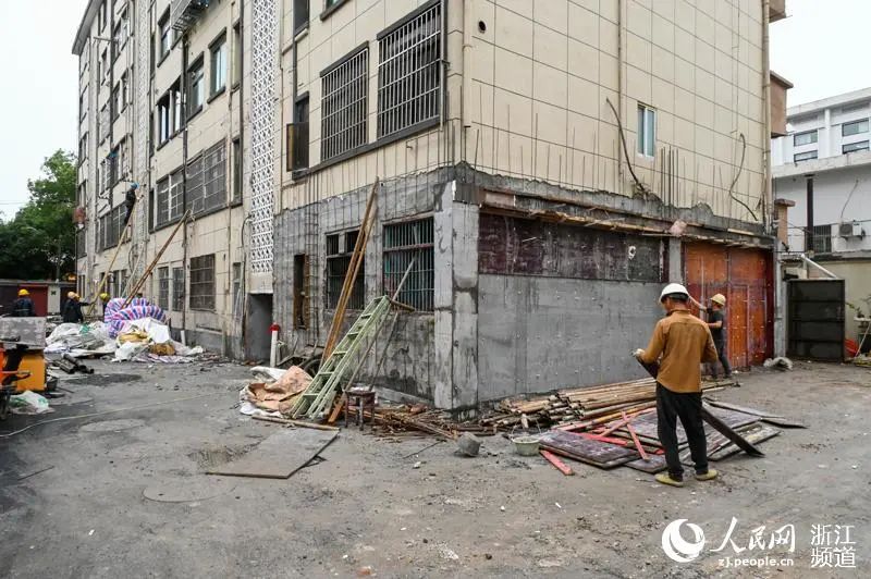 一楼业主所在房屋外围已被加固。人民网叶宾得摄据悉,该楼建于1988年,为砖混结构,共有6层36户住户。目前,该楼正由瓜沥镇人民政府委派的施工单位进行加固,四周过道也已封闭,防止对过往车辆和行人造成伤害。城管、社区、派出所三方联动,24小时值班,监督加固情况、防止人员进出。
