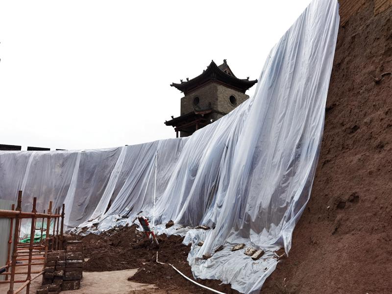 然而,这场北方罕见的持续降雨,却让山西古建筑陷入了危险之中。在太原,“国保”晋祠多处建筑屋面漏水,奉圣寺大殿西南角挡土墙坍塌;“国保”蒙山开化寺遗址及连理塔的南厢房,出现较大险情。在运城,“国保”运城盐池禁墙东禁门瓮城大面积坍塌,城台顶面严重塌陷,城墙出现多处裂缝;运城解州关帝庙崇圣寺门楼漏雨,春秋楼二楼大面积漏雨威胁到“夜读春秋”塑像。在临汾,“国保”临汾丁村民居1号房正房垂脊倒塌,28号院东西厢房倒塌,几乎每处房都有险情;“省保”临汾汾西县真武祠钟楼墙体裂缝,存在坍塌风险……