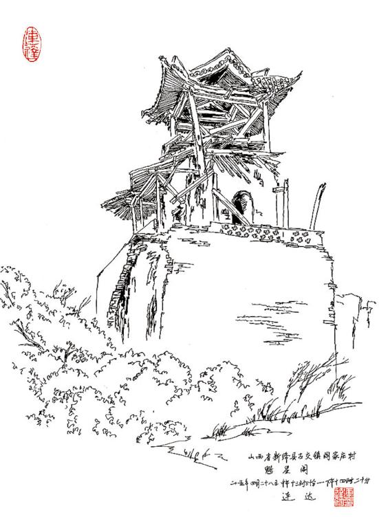 连达隐约觉得,这可能是他最后一次见到这座魁星楼。两年之后,连达将他多年来对山西古庙的踏访和手绘整理成书出版,是为两册《寻访山西古庙》,书中既有闻名遐迩的建筑,如应县木塔,也有籍籍无名的乡野建筑,例如这座魁星楼。