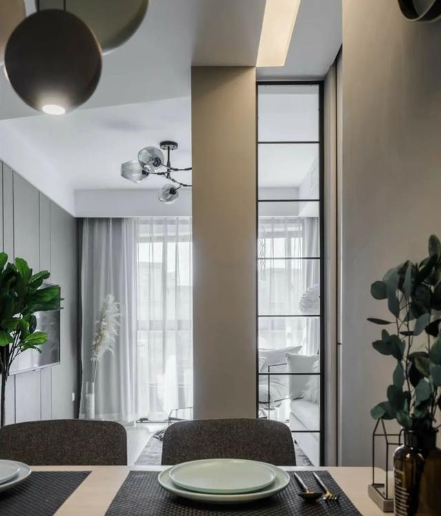 客餐厅之间做了铁艺加玻璃的小隔断,让客餐厅之间的联系“藕断丝连”,通光又美观。