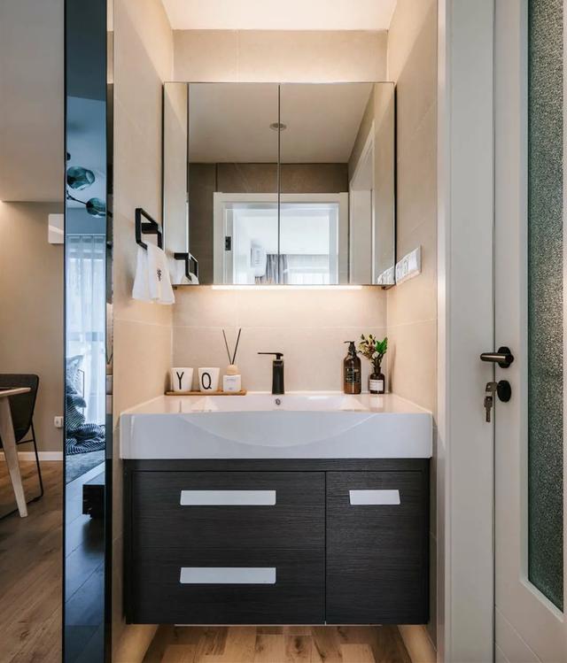 卫生间做了三分离的干湿分离,镜柜按尺寸定做,上下留了灯带。