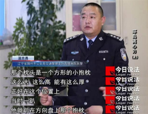 其次微妙的是丈夫活命的机会太巧了。事故发生时车子几乎是以垂直的角度撞上环岛的挡墙,交警对现场痕迹进行调查后确认,事发时车速高达80公里/小时以上,并且车子压根就没有刹车。如此强烈的撞击正常情况下车上二人都不会活命,但偏偏方向盘上出现了一个本不该出现在此的抱枕,这个抱枕保住了开车的丈夫一命。