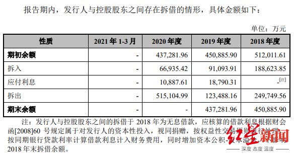更加值得注意的是,川宁生物与控股股东科伦药业之间频繁、巨额的资金拆借。招股书显示,报告期内,川宁生物发生的关联方拆借全部为与控股股东科伦药业之间的拆借。