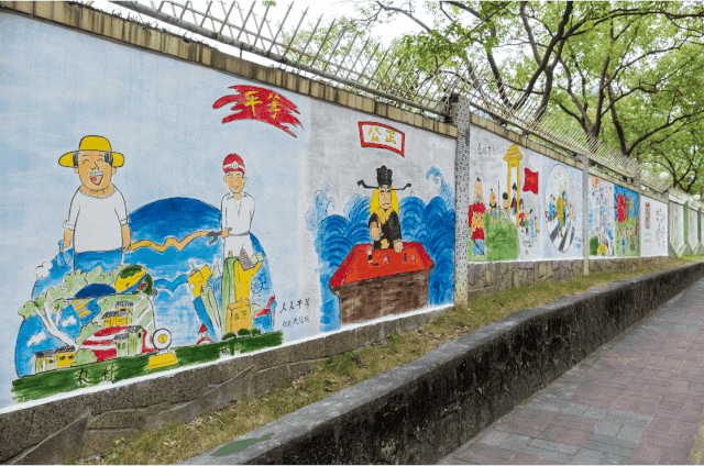 形象生动地展现在围墙上,