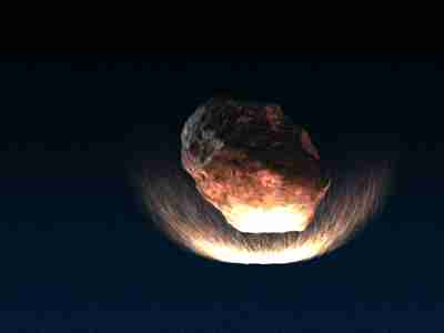 小行星在空中被一个高速飞行的不明物体击中,而就在两个物体相碰撞的一瞬间,行星发生了爆炸。