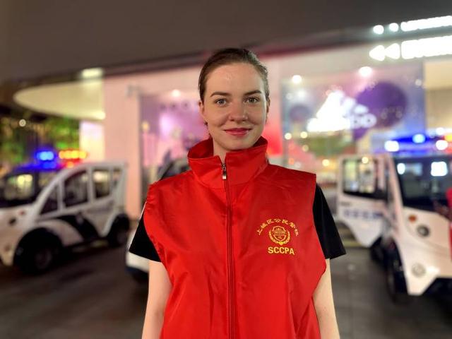小时新闻记者打听到,小姐姐名叫劳拉,26岁,来自罗马尼亚,是公民警校国际驿站的志愿者。