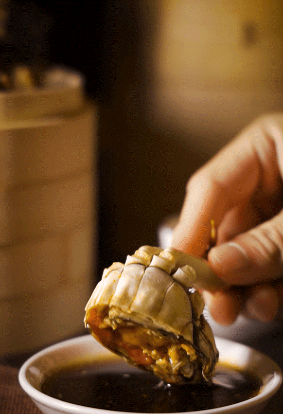 壮实的清水大闸蟹揭开蟹盖满目都是金灿灿的蟹粉,母蟹通红的蟹黄鲜甜得难以言喻,公蟹的蟹膏更是凝脂醇厚,一口咬下满足感爆棚!蘸一点王宝和特制蟹醋,更是鲜上加鲜!
