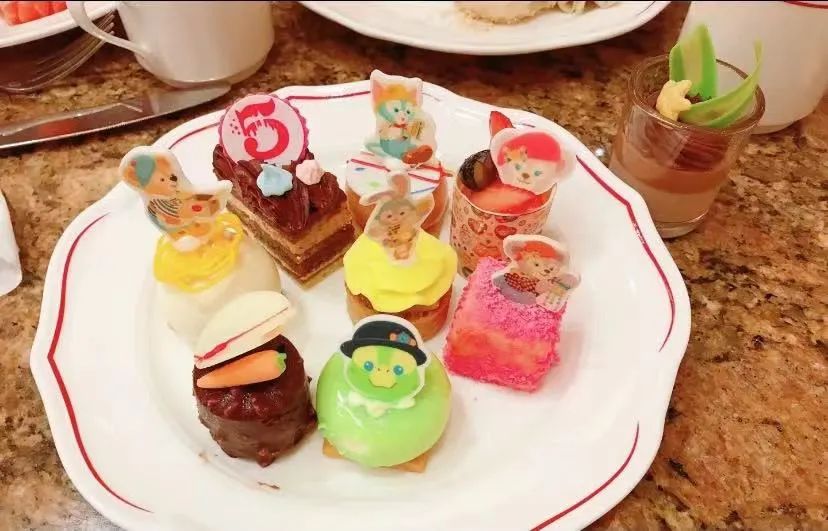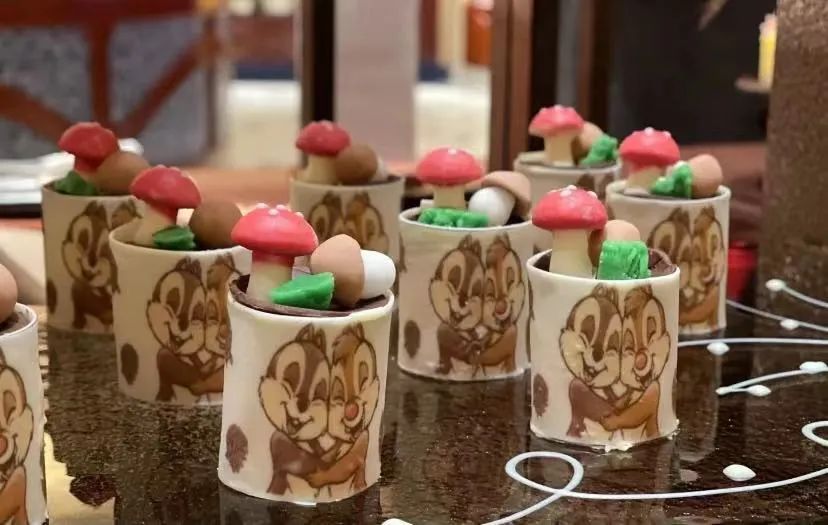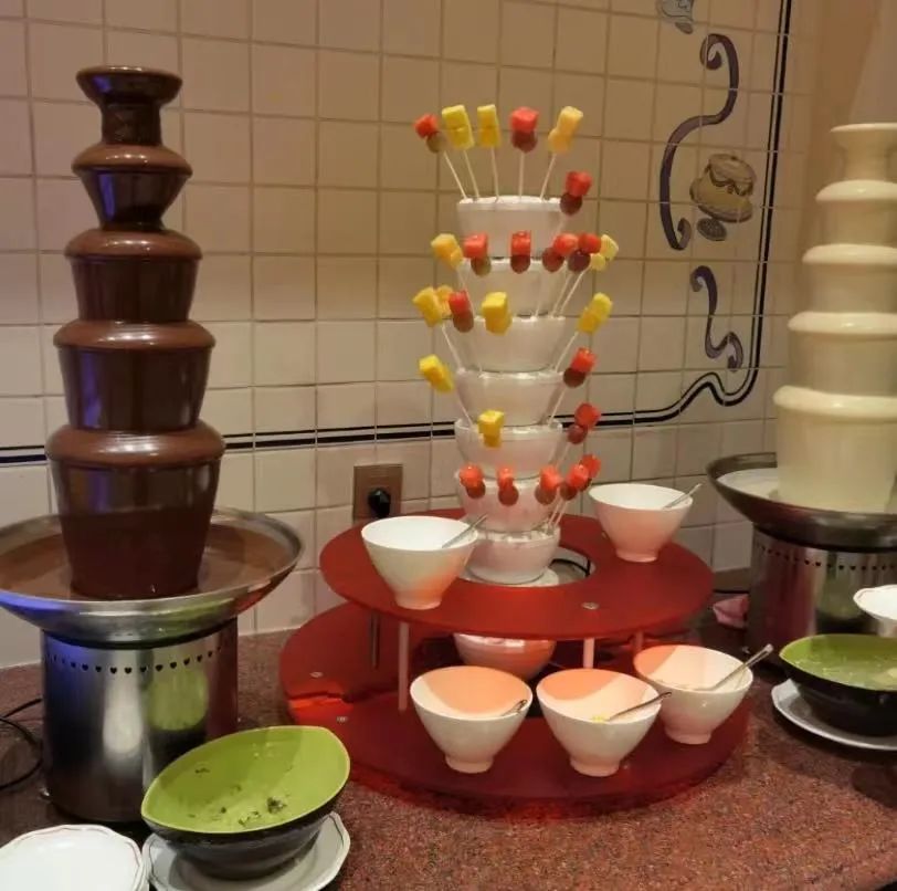 最受小朋友们关注的还属这里的甜品,连巧克力瀑布都有黑白两种颜色呢!卢米亚的特色就是迪士尼蛋糕,不仅好看,味道也非常惊艳,还有现做的米奇华夫饼。