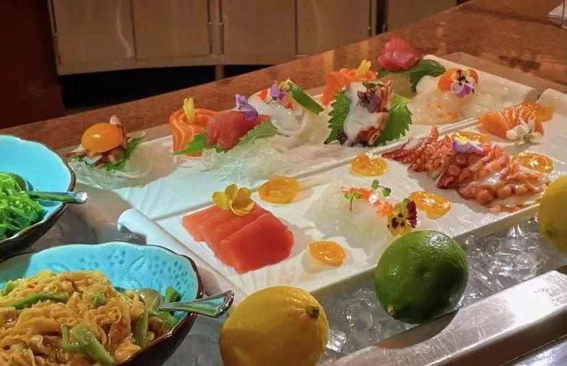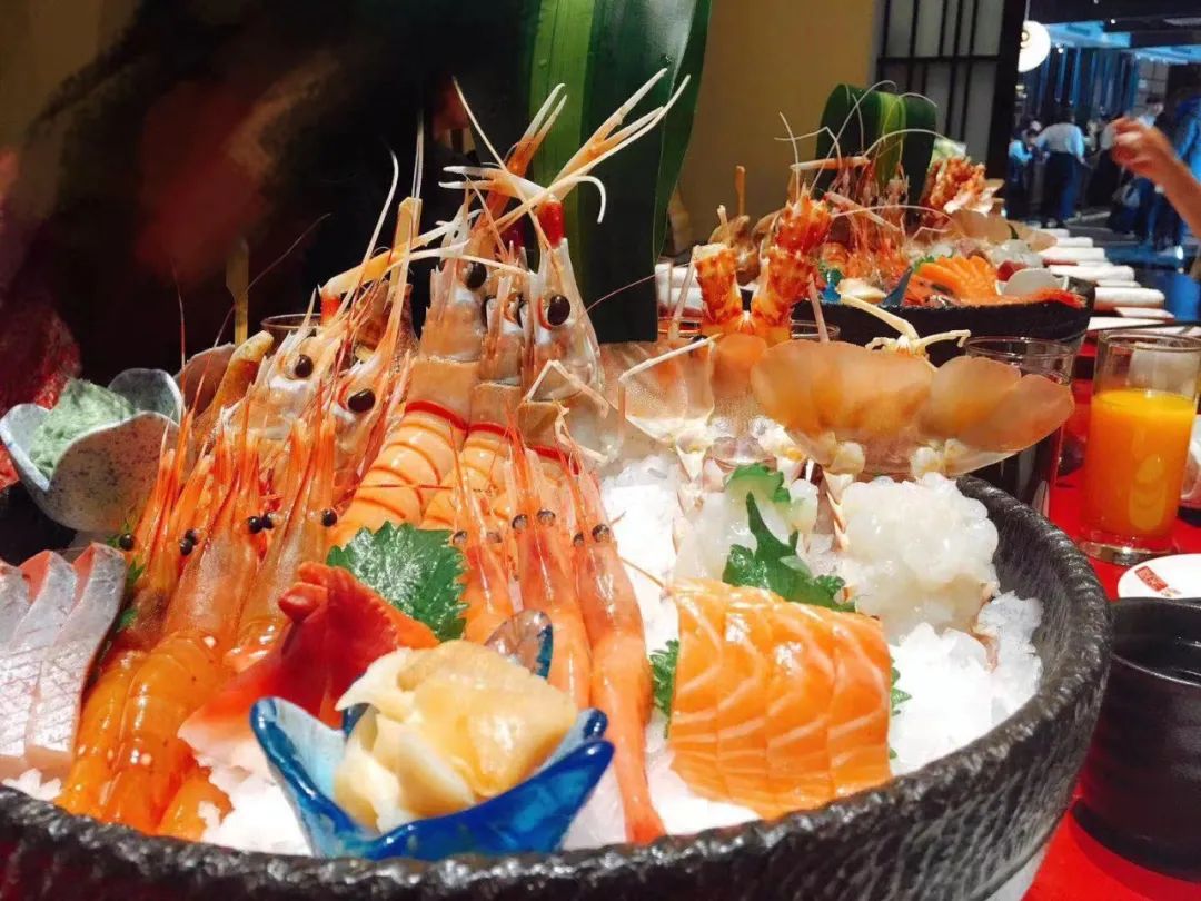 最受欢迎的牛肋肉,超美的金枪鱼,搭配不限量供应的鱼子酱,一口下去也太满足了吧!还有超大的红虾,刺身波龙随便吃,记得装满满一盘哦!