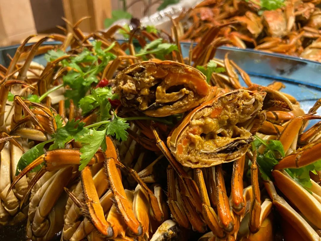 王宝和自上世纪八十年代推出蟹宴,一举获得了“蟹大王”的美誉。在王宝和的自助餐里,这些蟹菜自然也不能缺席!除了蟹粉拌面、蟹油小馄饨等往年人气选手,今年菜单中还新增了蟹粉狮子头、蟹粉小笼以及香辣蟹。