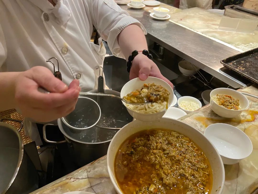 蟹粉由专人当日新鲜手拆,每年都是供不应求。铺天盖地的蟹粉包裹着面条,一口塞进嘴里满满都是幸福感!(PS:蟹粉拌面每日限量供应!)
