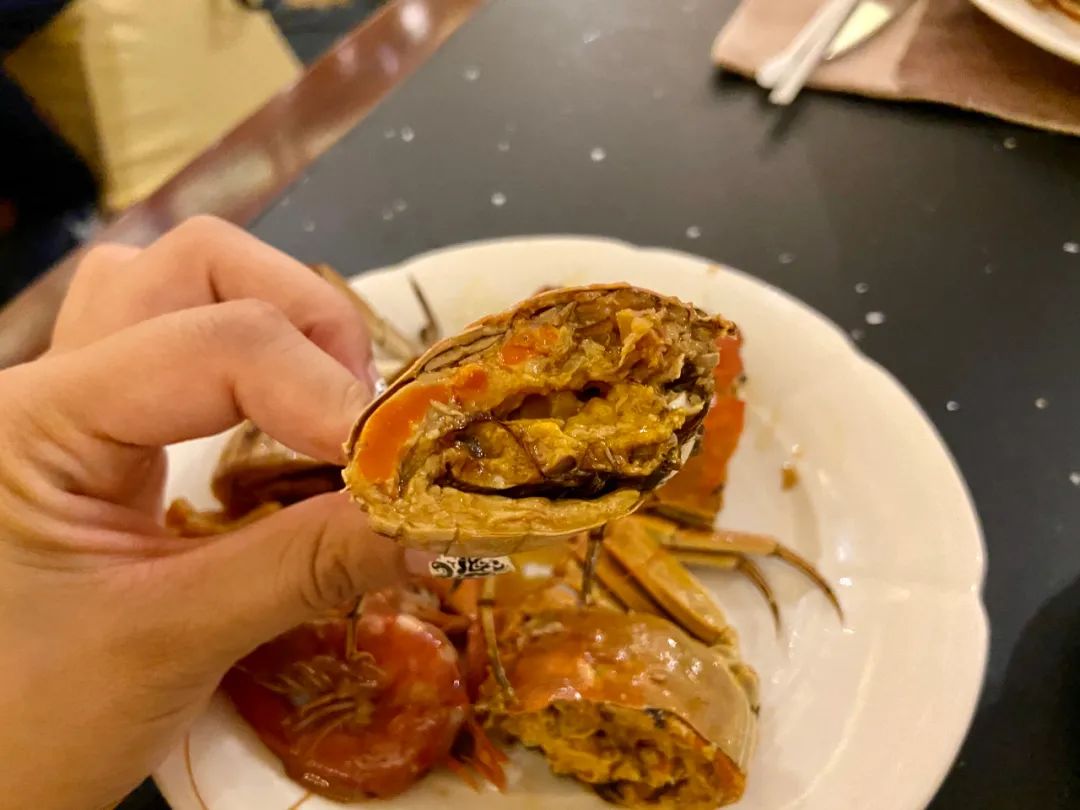 王宝和的熟醉蟹,一切为二,方便蟹被酒充分浸透。拿起一只,揭开蟹盖抿上一口,醇厚的酒香与蟹黄的鲜甜完美融合,恰到好处的甜味从舌尖蔓延至整个口腔,完美诠释了“酒不醉人人自醉”的美妙。