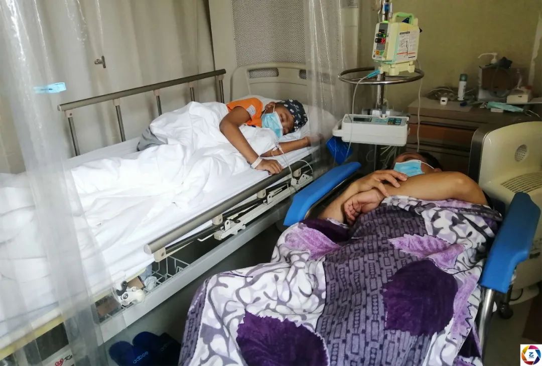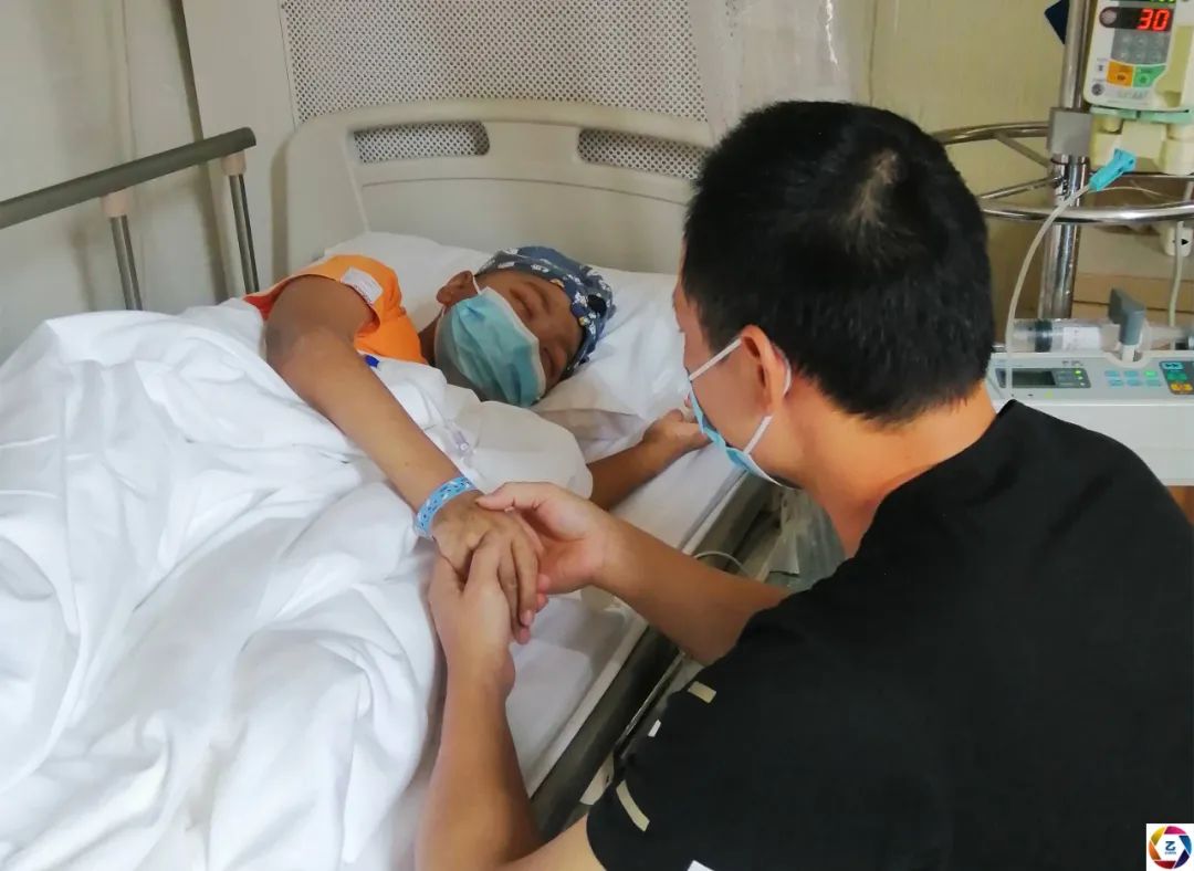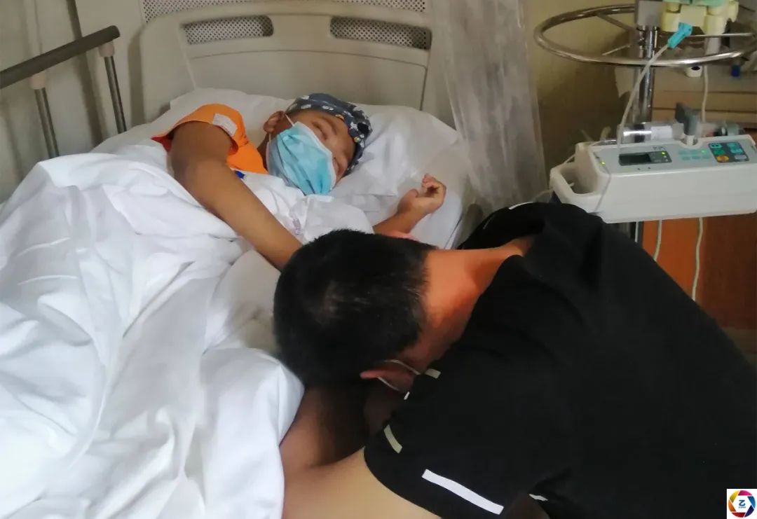 医院内没有床位,黄积博就买了个折叠椅,盖着薄薄的毯子,面对面握着孩子的手睡在儿子身边,这样旭祥睁眼就能看到爸爸,心里也就不再感到那么害怕。